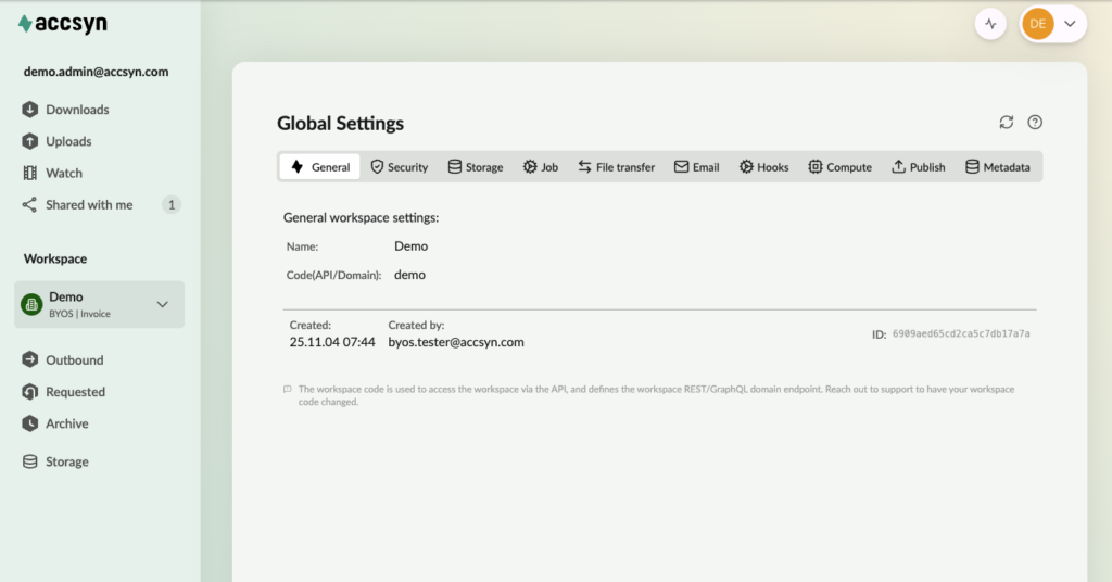 The updated admin pages provide full administrative control of your accsyn workspace, including: